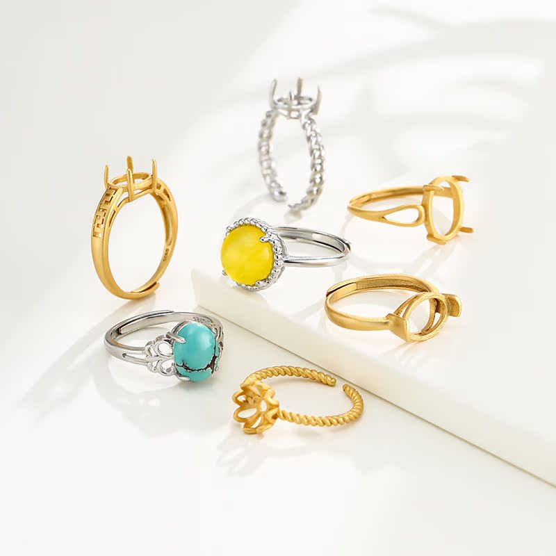 麻绳日韩设计戒指空托女 镶嵌蜜蜡琥珀翡翠开口戒指托空托diy配件