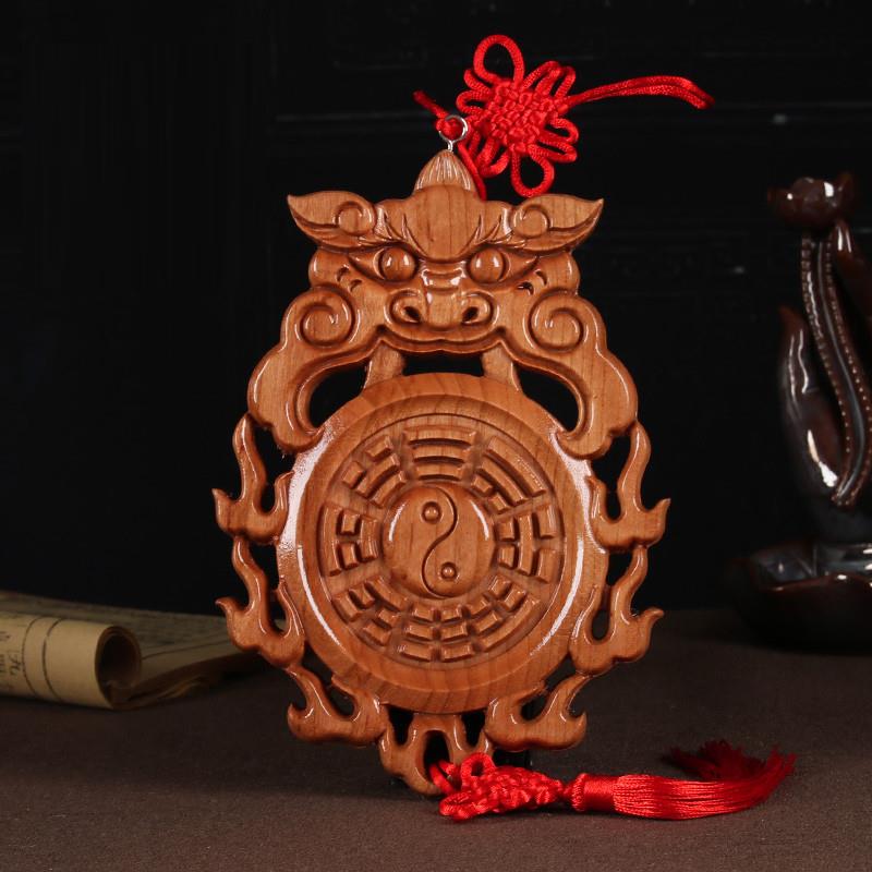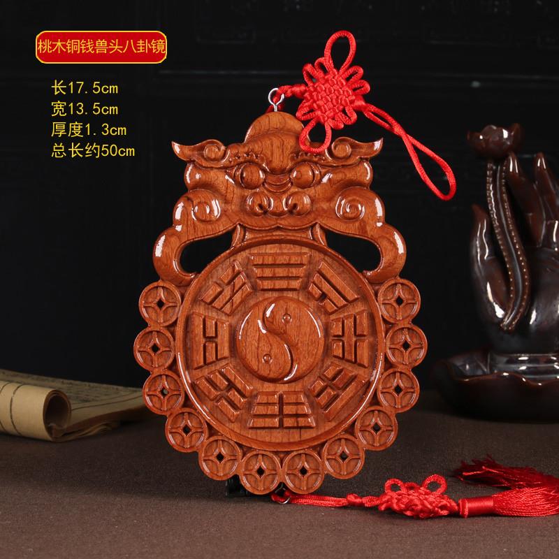 桃木兽头挂件虎头八卦镜卫生间挂饰解决厕所对大门卧天然桃木兽头