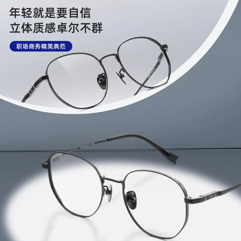 商务超轻近视眼镜框男专业可配度数防蓝光抗辐射方圆脸显脸小镜片
