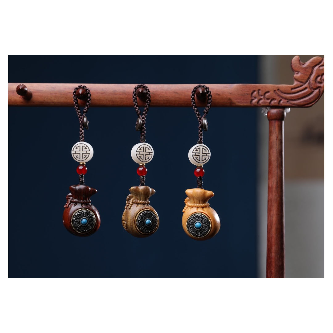 绿檀木转钱手机吊坠车钥匙扣挂件招财福袋男女士背包随身把玩饰品