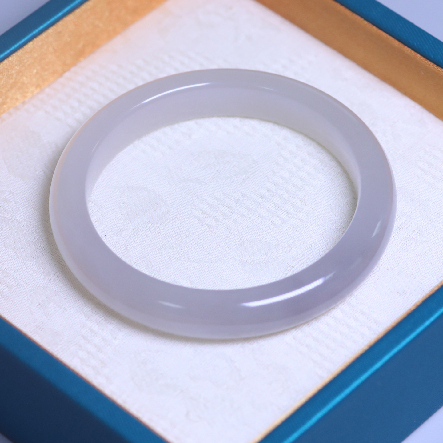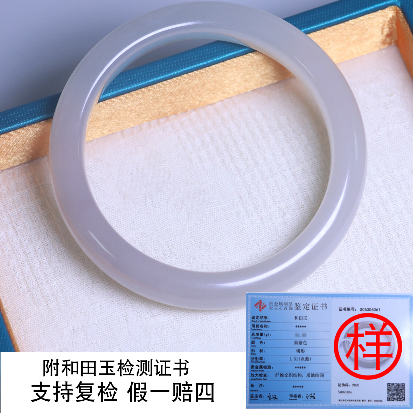珪宝58.3mm和田玉冰烟紫宽条手镯女款玉石镯子天然送女生礼物2650