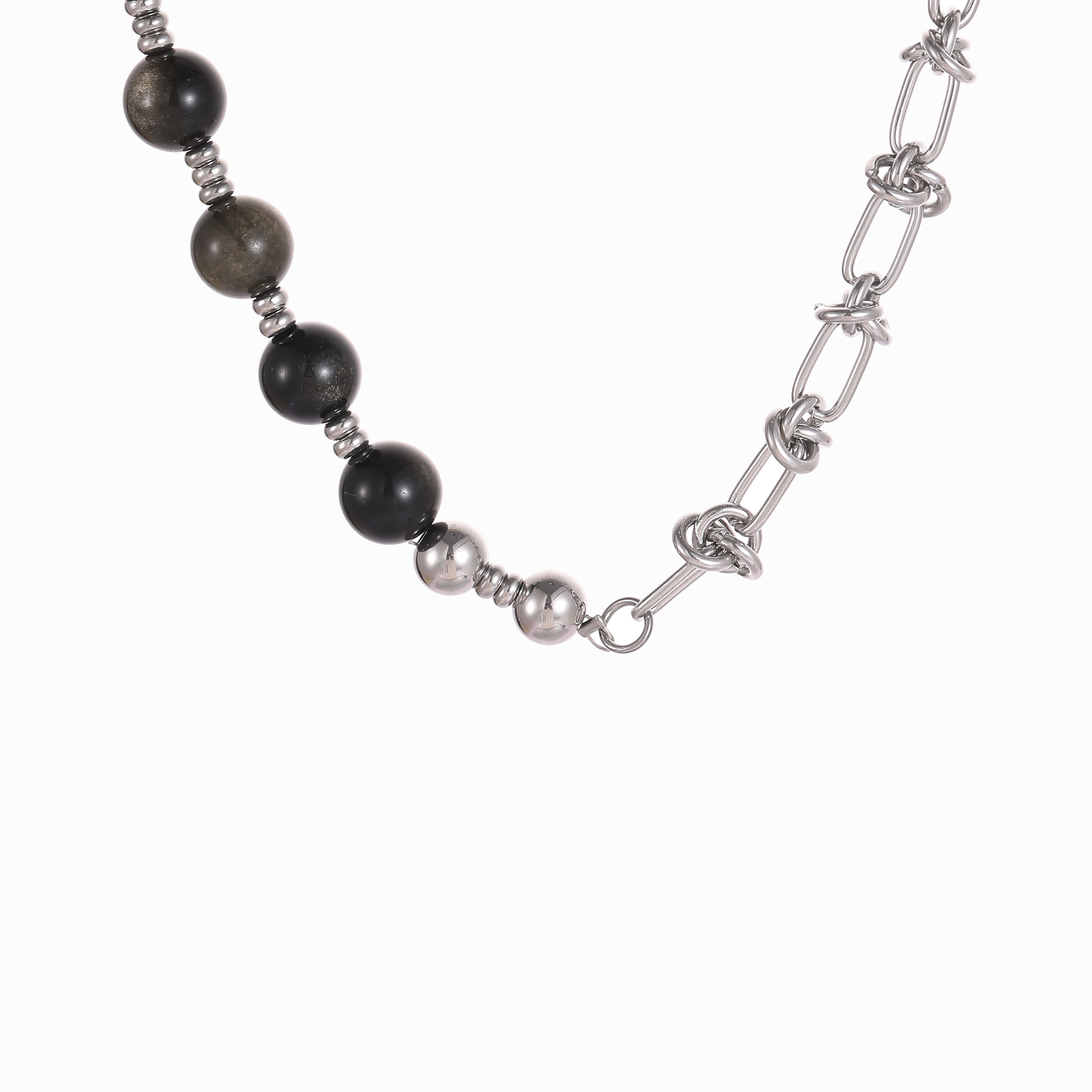 原创天然石珍珠钛钢拼接项链男女款嘻哈潮轻奢小众设计情侣锁骨链