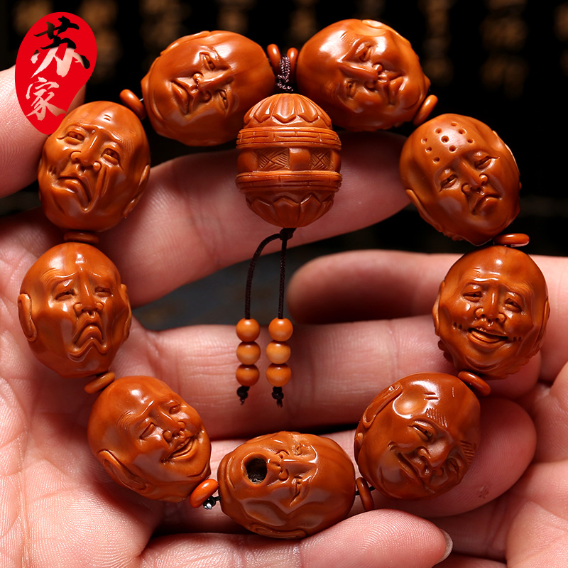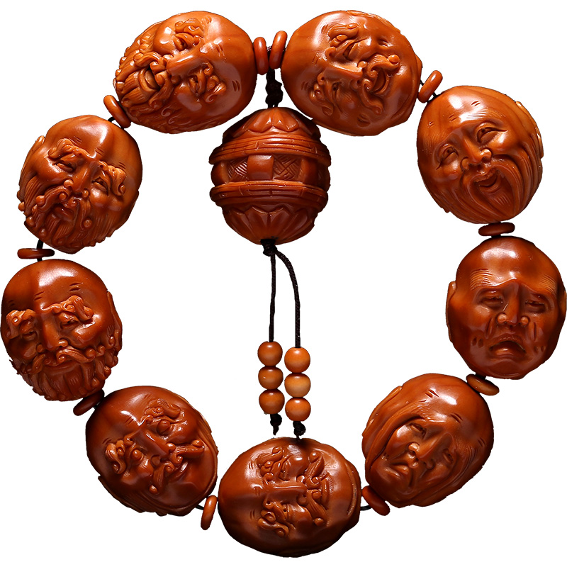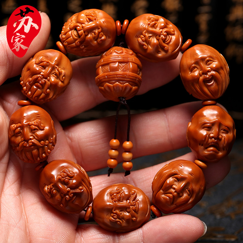 十八罗汉橄榄核手串 文玩把件橄榄核雕手工雕刻双面 手串男士手链