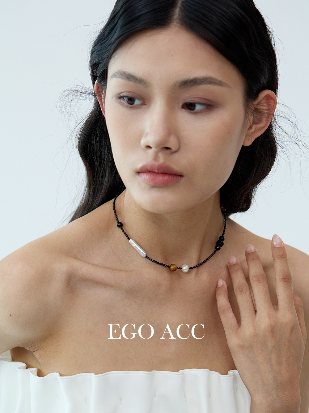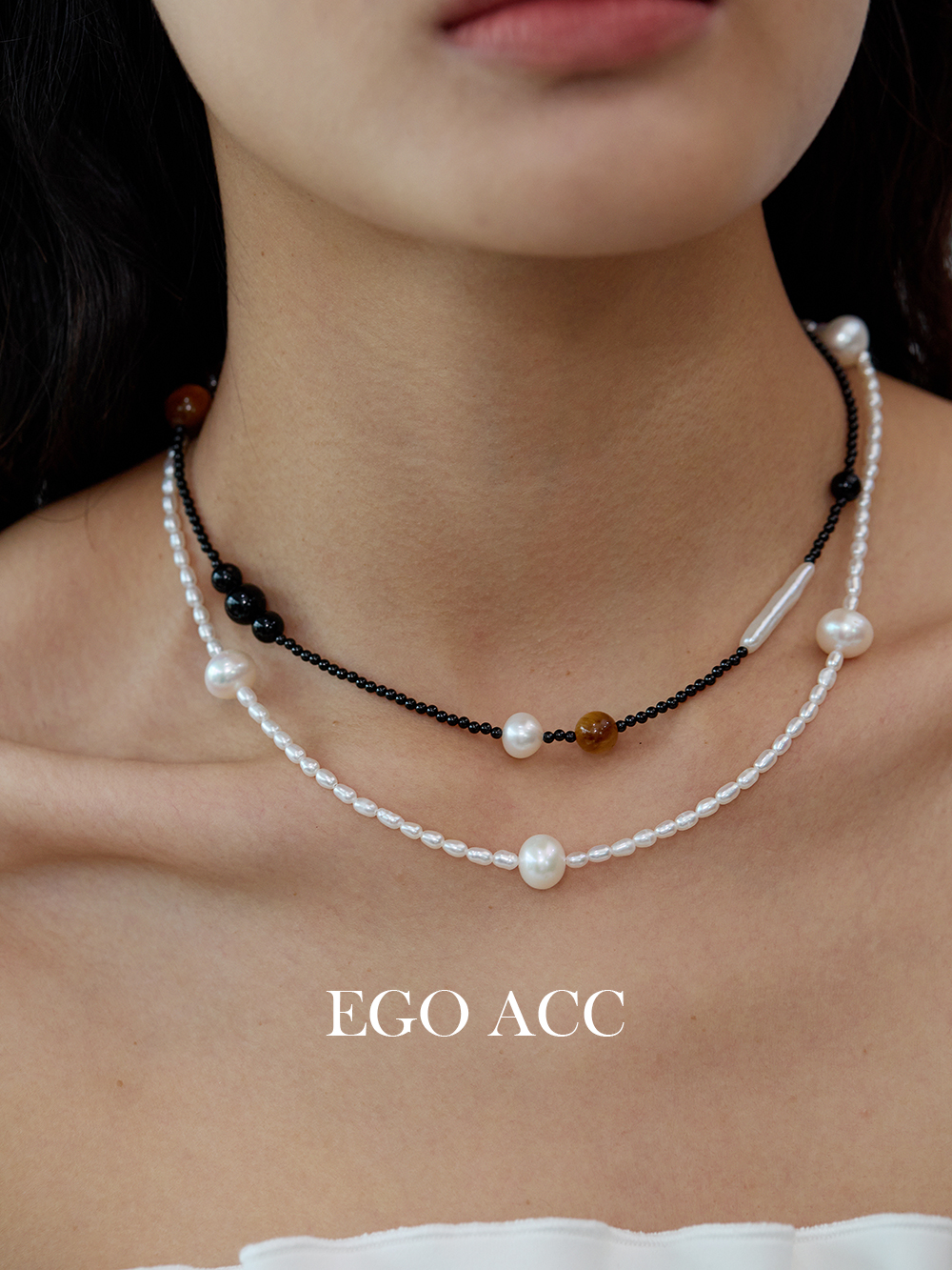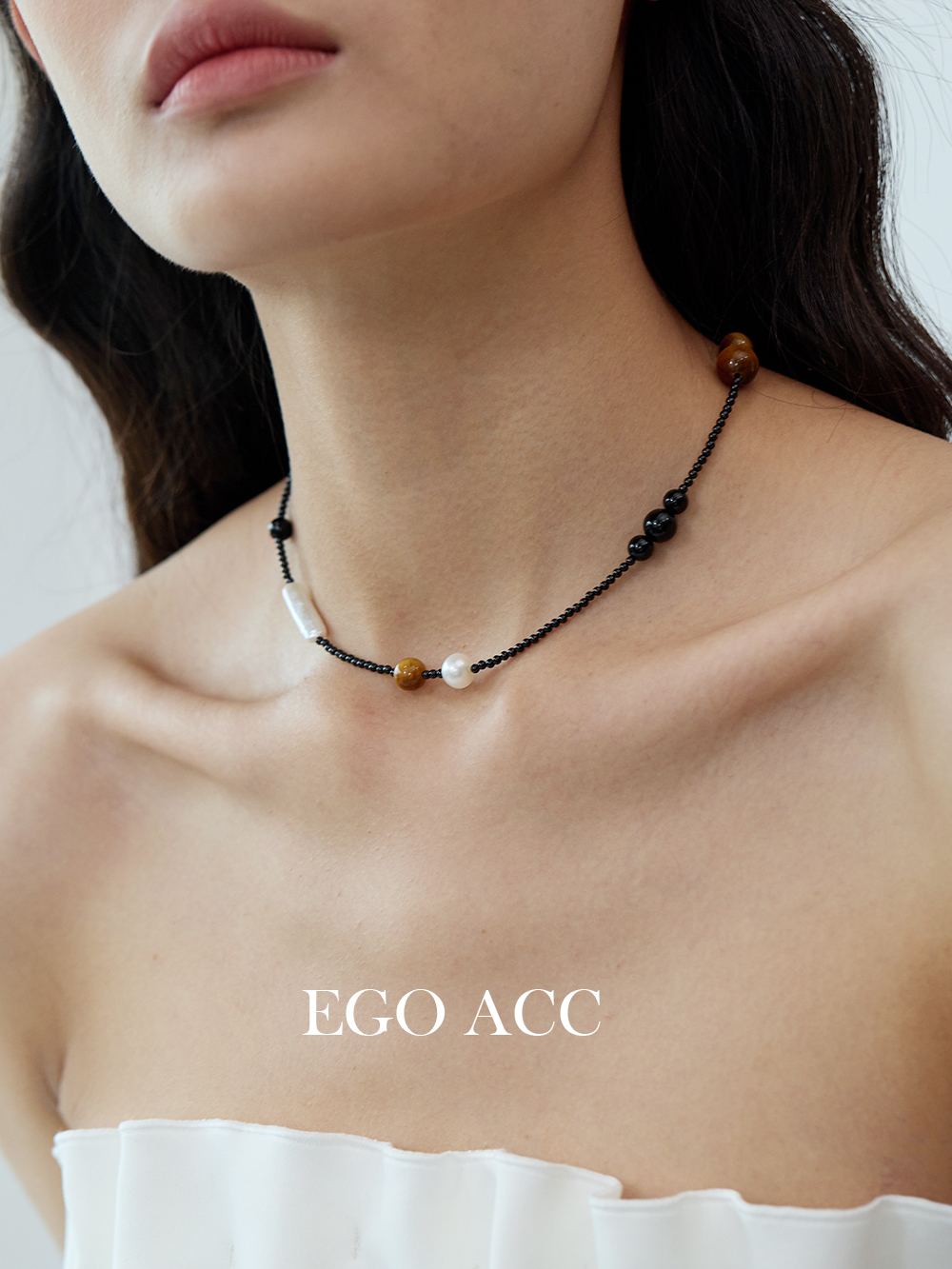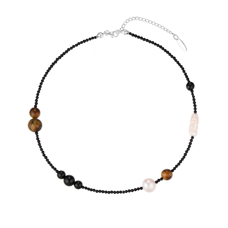 EGO ACC 春夏休闲时髦虎眼石珍珠编织美拉德项链不规则串珠锁骨链