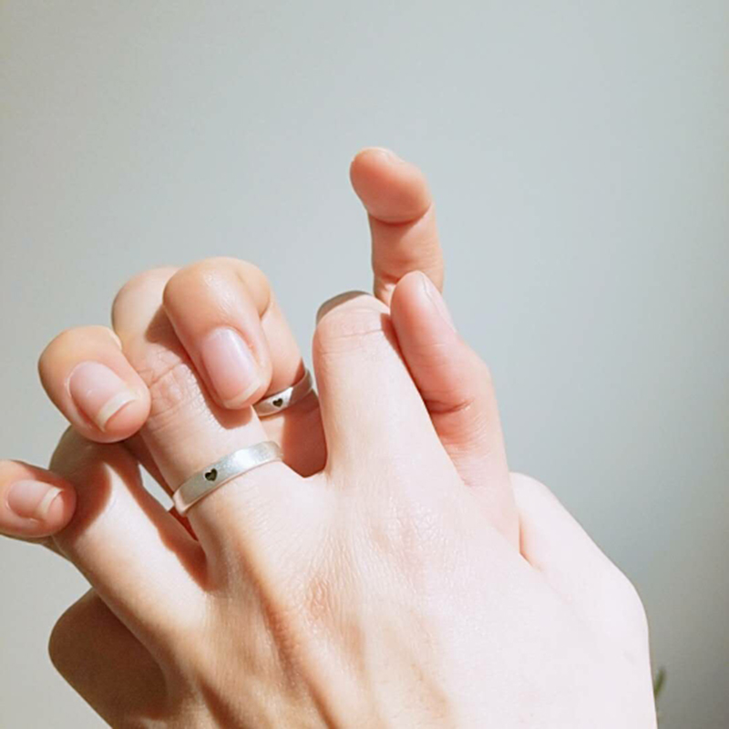 柒玥铭心纯银磨砂情侣戒指男女一对款刻字对戒生日送女友潮人饰品