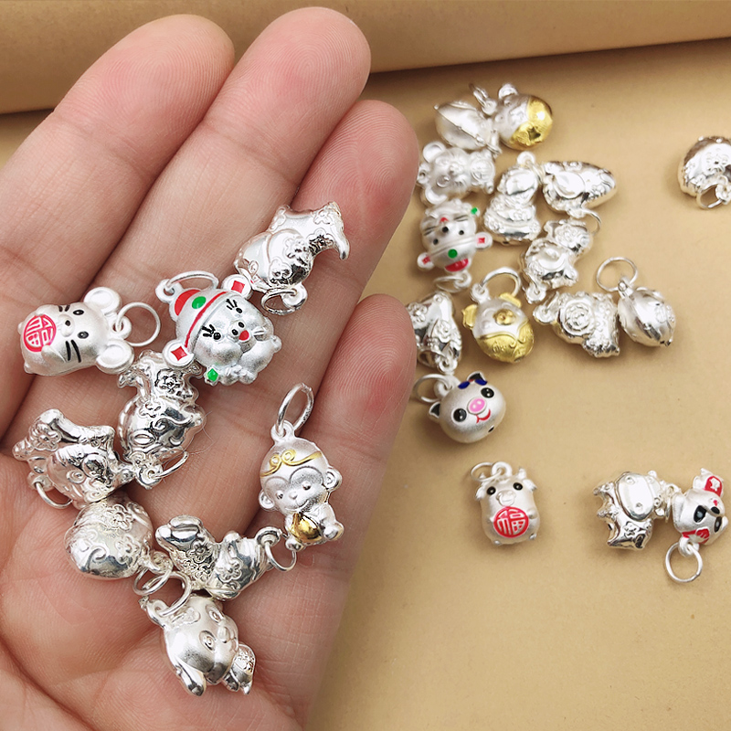 纯银十二生肖属相牛年本命年吊坠diy吊饰配件鼠兔龙马羊猴鸡狗猪