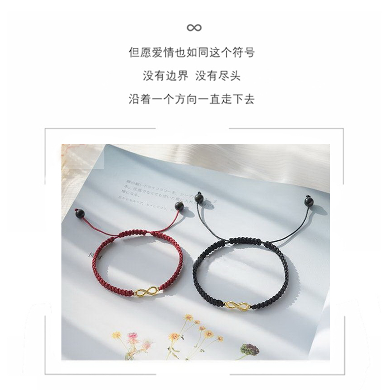 无限爱纯银情侣手链一对情侣款编织女款红绳生日情人节礼物送女友