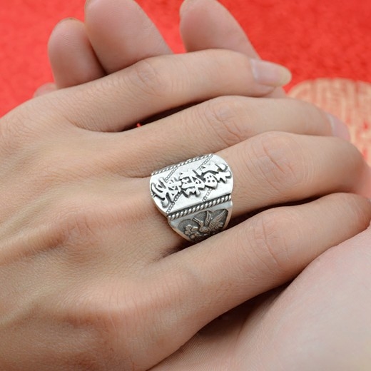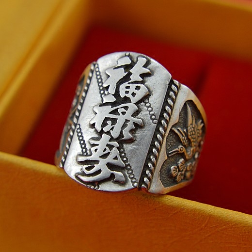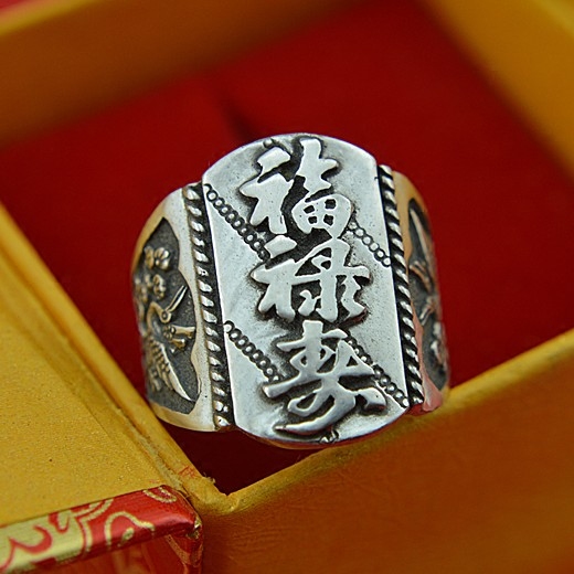 复古999福禄寿纯银戒指男士宽面霸气扳戒扳指银指环足银戒指食指