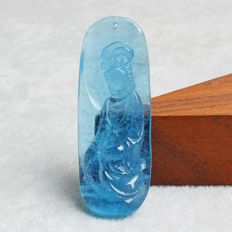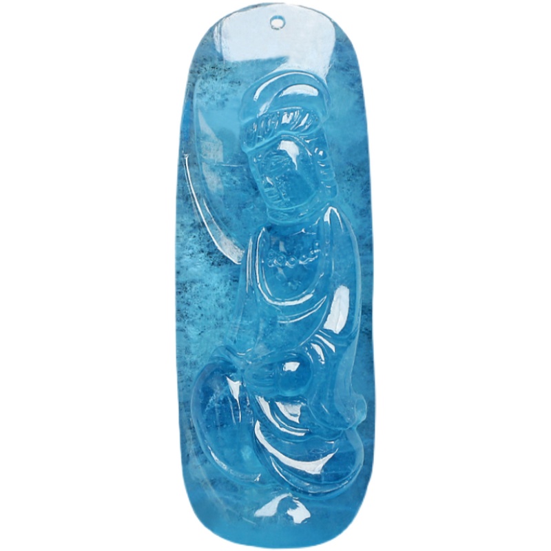 巴西海蓝宝冰种观音吊坠水晶雕刻小件挂件蓝色项链颈饰锁骨链饰品