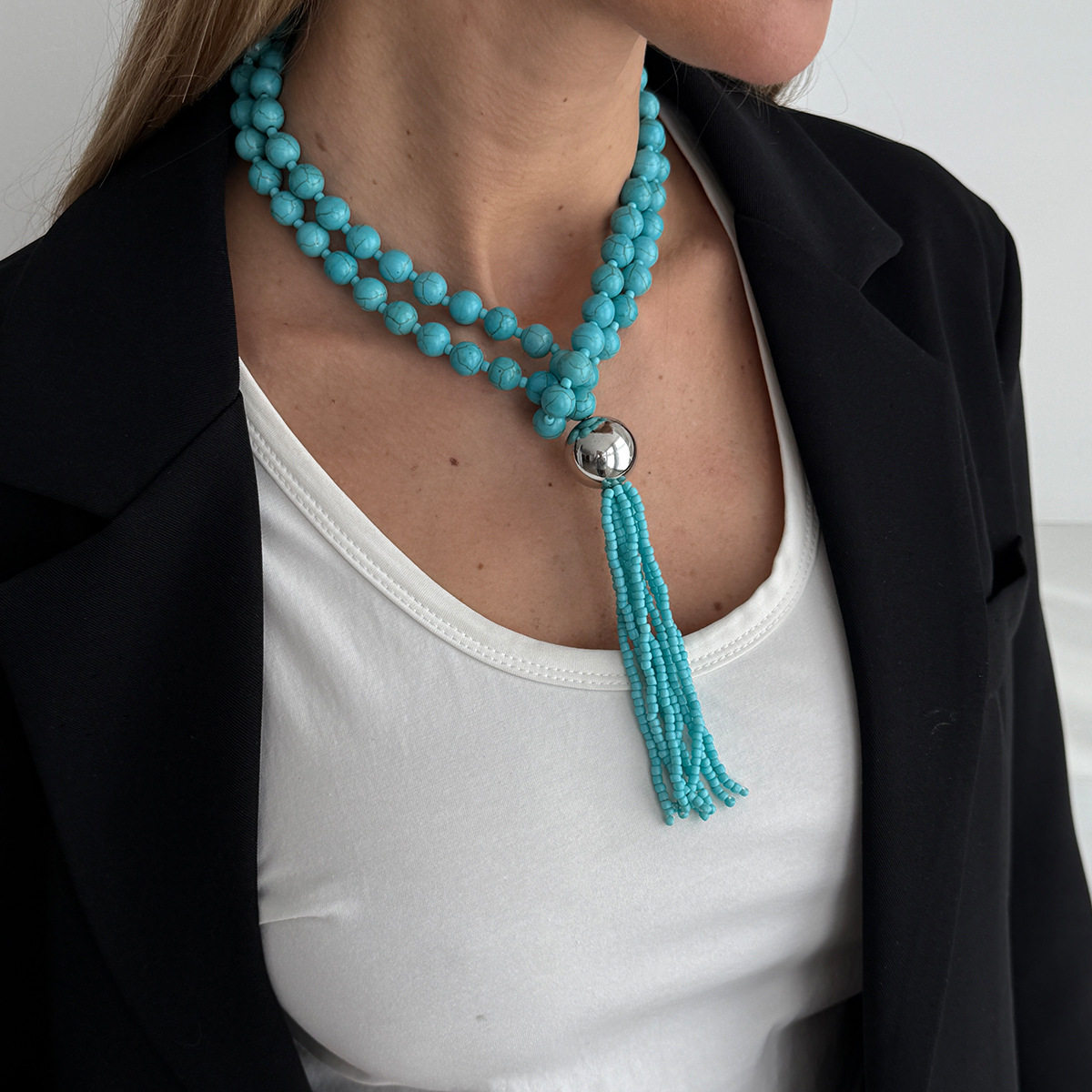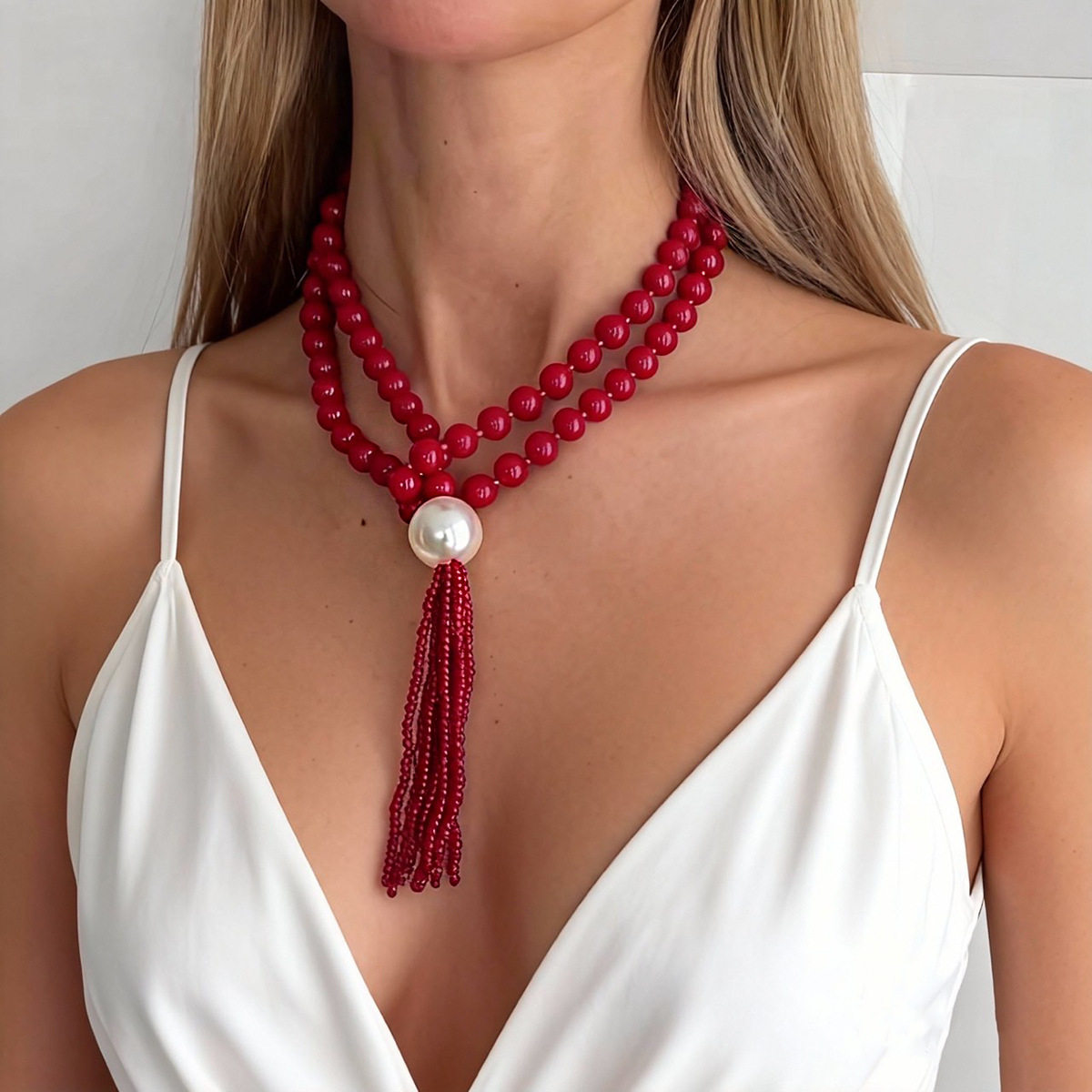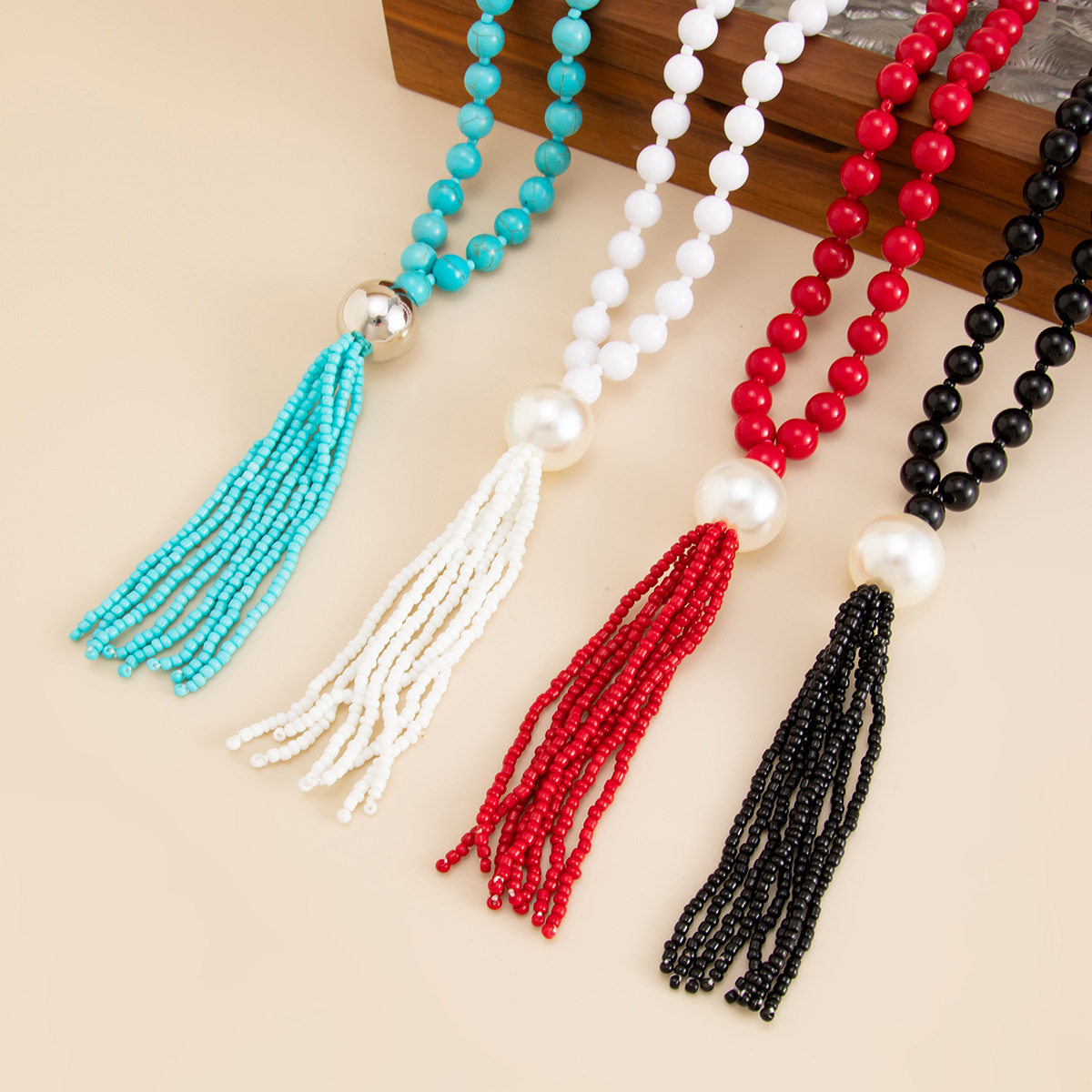 欧美跨境ins亚克力串珠米珠项链女 气质夸张大圆珠Y形流苏项饰品