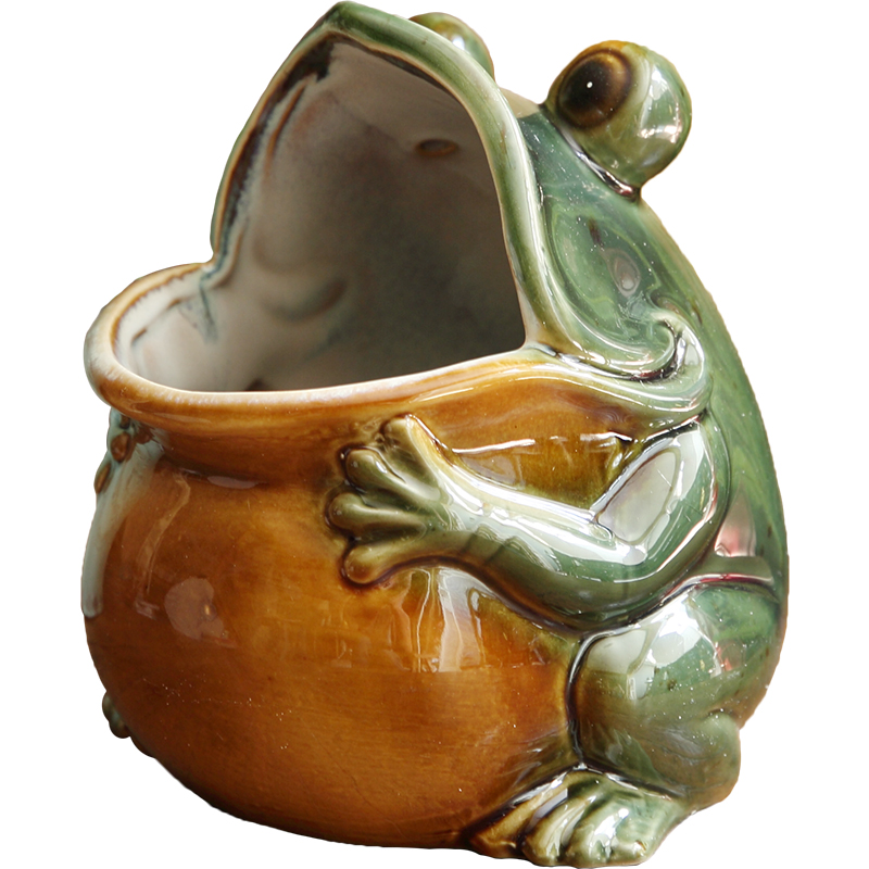 创意大嘴青蛙门厅招财储蓄罐水培花盆笔筒杂物收纳客厅装饰摆件