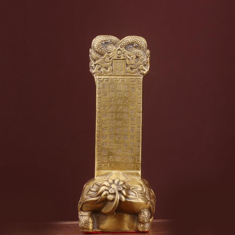 全铜泰山石敢当摆件霸下赑屃龟驮碑摆件纯铜龙龟摆件化解路冲