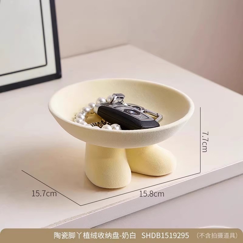 入户玄关钥匙收纳摆件红色高级感轻奢高档陶M瓷进门口装饰置物托