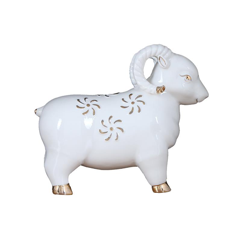 白色陶瓷小绵羊摆件招财补角十二生肖羊吉祥物家居客厅工艺品装饰