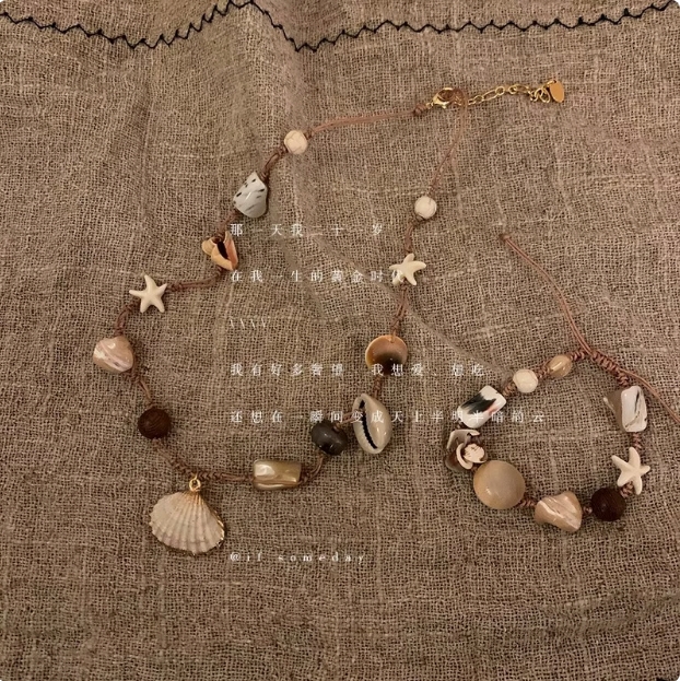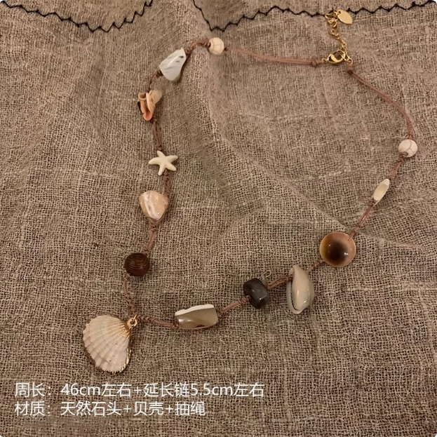 海边度假锁骨链波西米亚风手工吊坠编织绳异域风天然贝壳项链配饰
