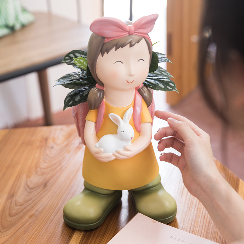 可爱背包女孩摆件j家居客厅电视柜装饰儿童房卧室桌面少女心小摆
