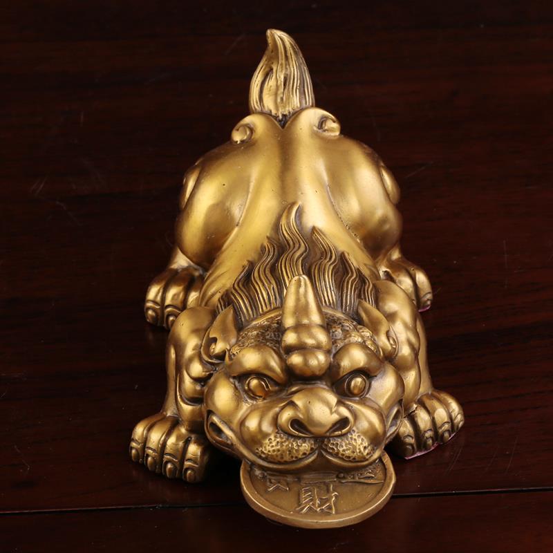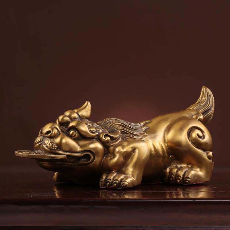 全铜貔貅摆件办公小摆件茶宠工艺品纯黄铜风水皮丘招财全铜车摆