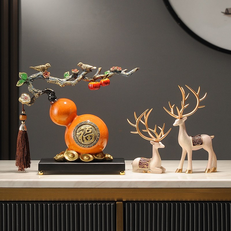 招财福鹿葫芦摆件轻奢高档客厅玄关电视柜酒柜工艺品X乔迁新居礼