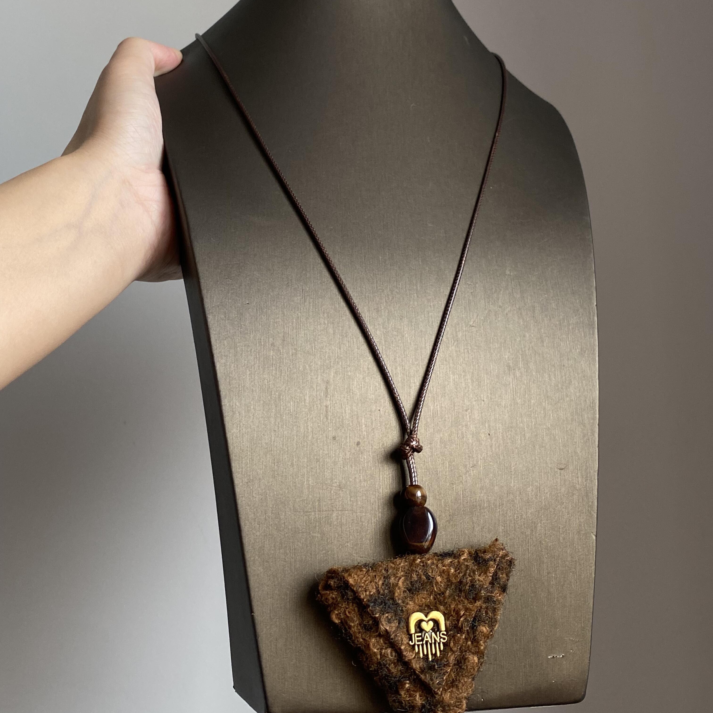 复古美拉德豹纹三角包吊坠项链女款秋冬独特百搭小众高级感毛衣链