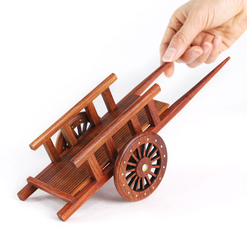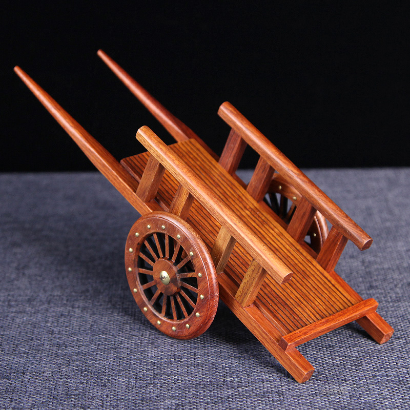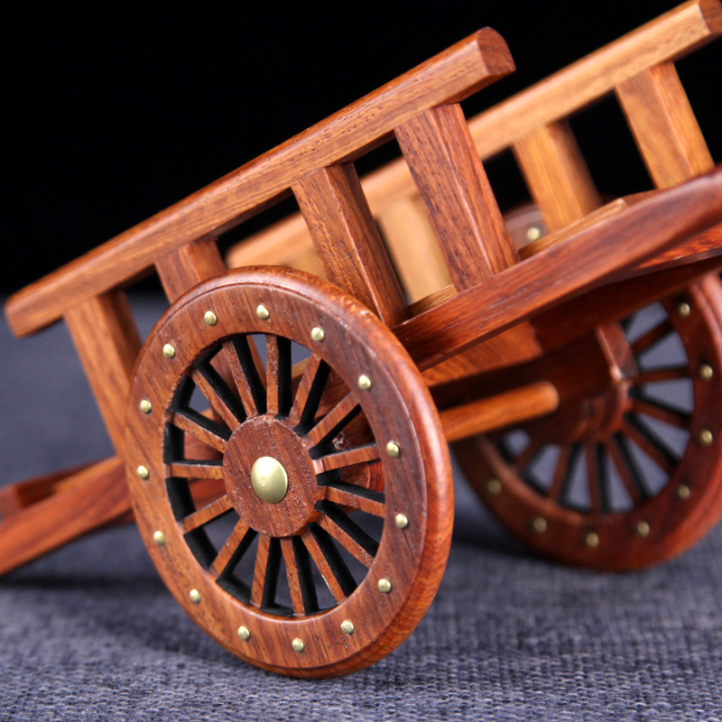 花梨木雕刻工艺品红木摆件桌面创意小推车农具微缩模型送老外礼物