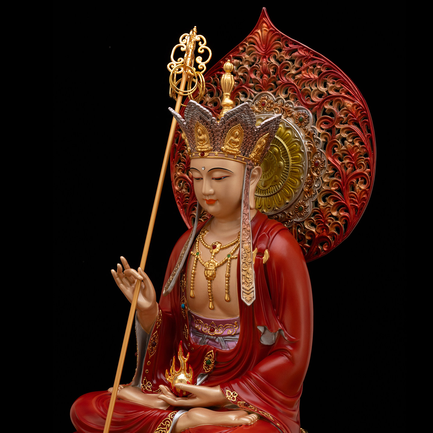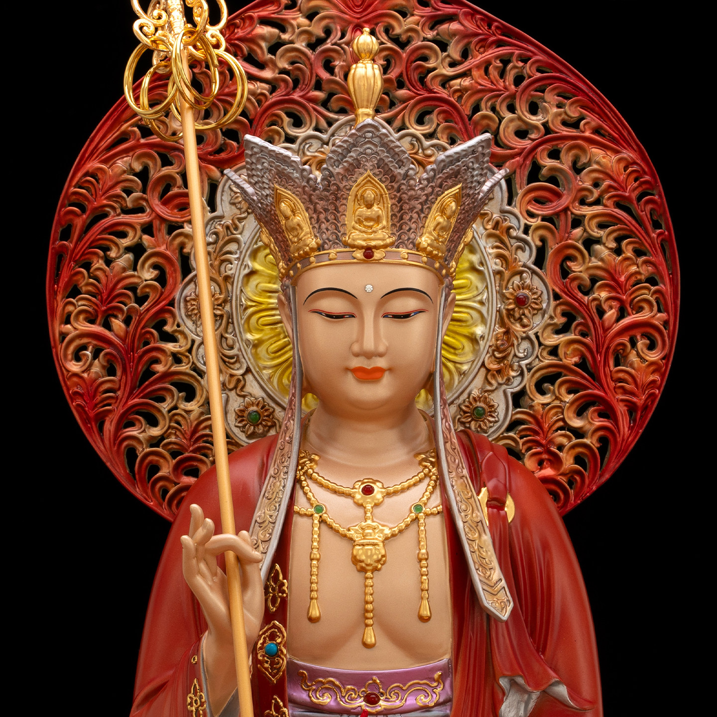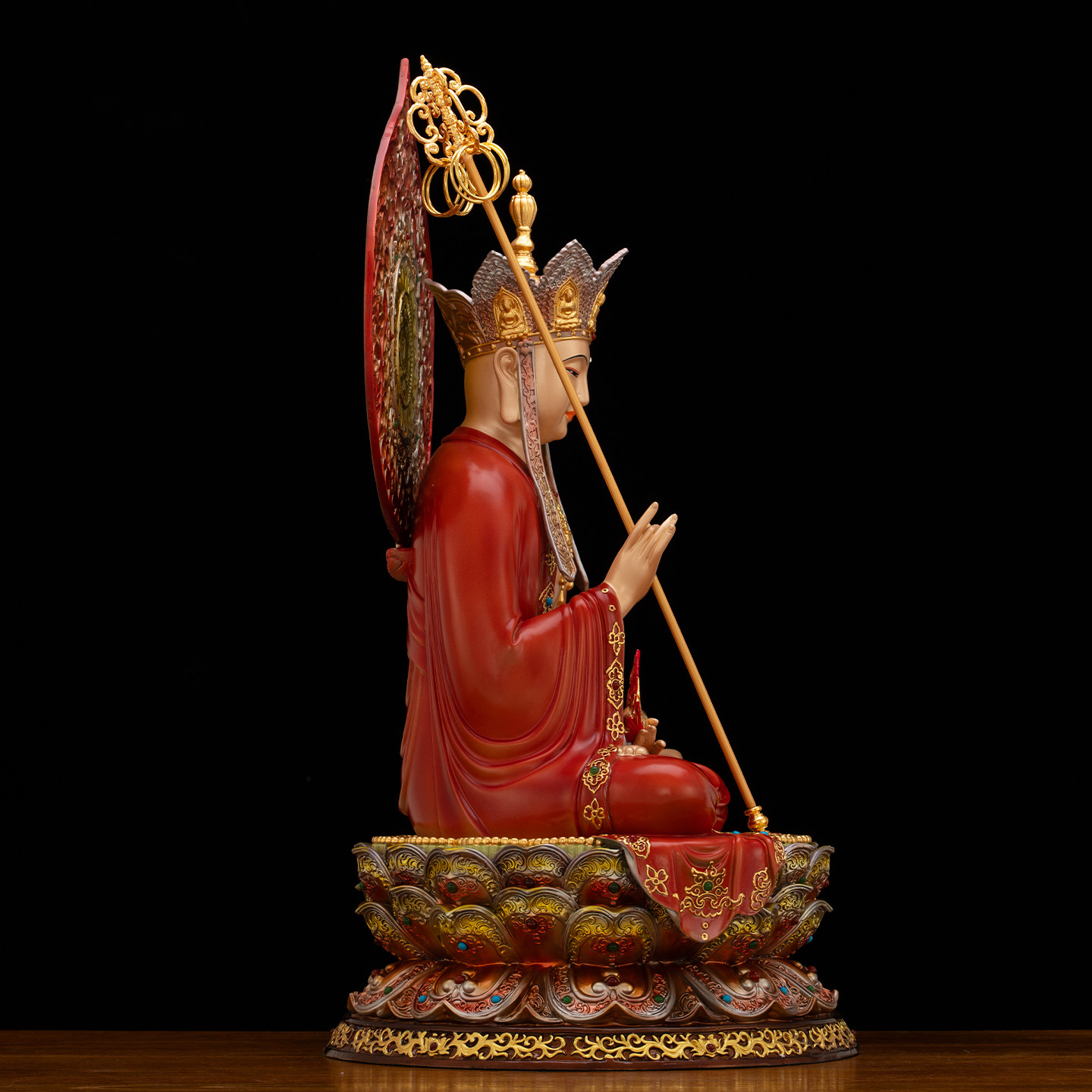 台湾纯铜彩绘地藏王菩萨家用供奉九华山地藏菩萨佛像娑婆三圣摆件