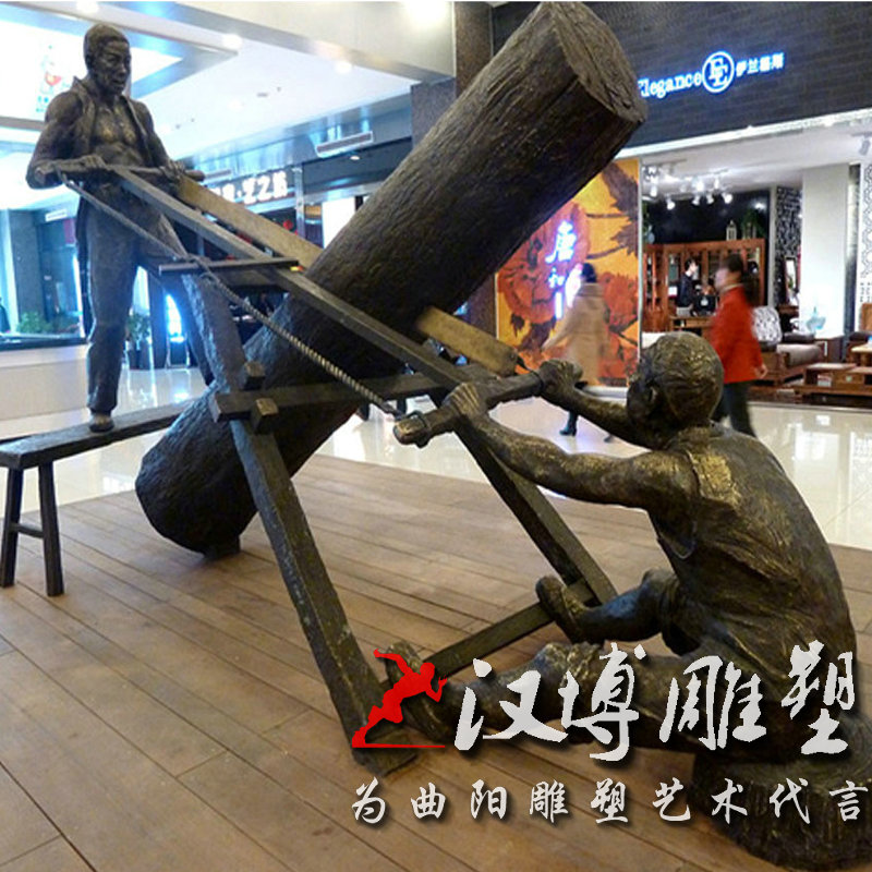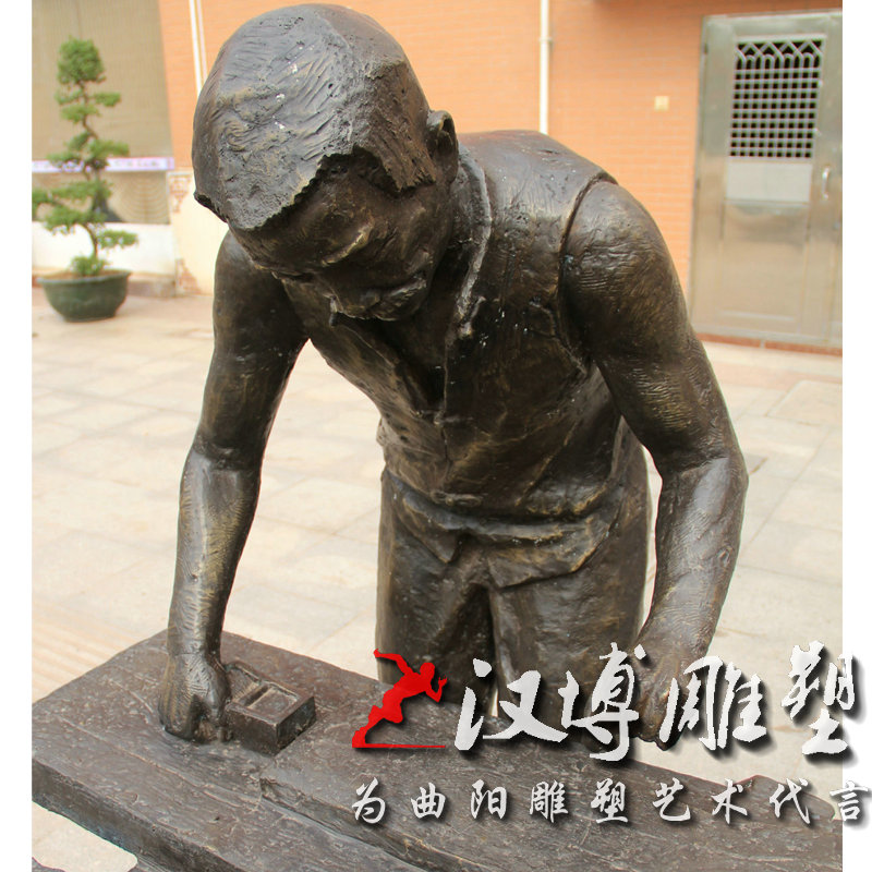 玻璃钢仿铜人物雕塑景观广场铸铜修理木桶工人雕塑铜雕塑人物定制