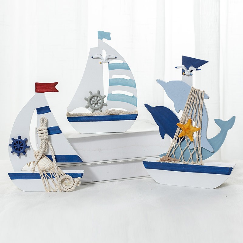 地中海摆件一帆风顺小船实木海洋船模型婚庆礼品木制品定制