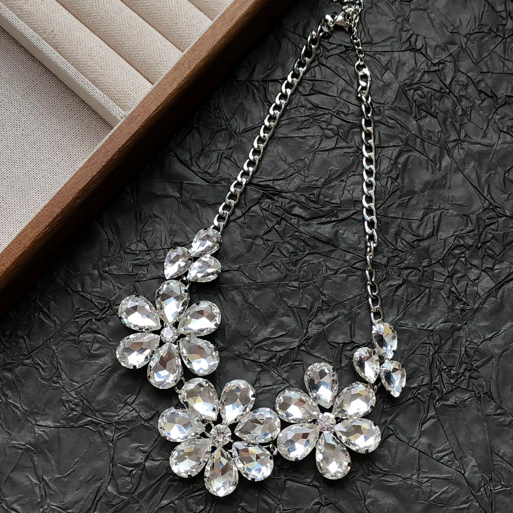 法式轻奢气质水钻大花朵项链女小众设计感夸张个性锁骨链百搭颈链