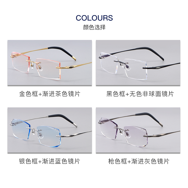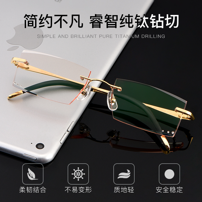 无框切边近视眼镜男超轻纯钛无边框钻石切割男士大脸商务近视镜潮