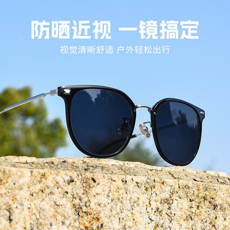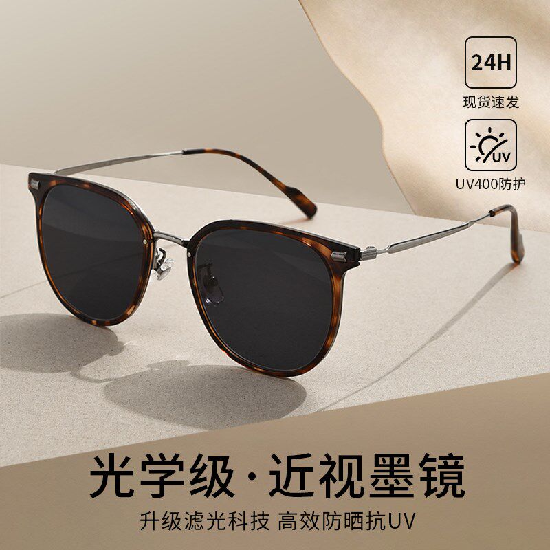 超轻纯钛复古近视墨镜女款2025新款偏光太阳眼镜带度数级感大脸