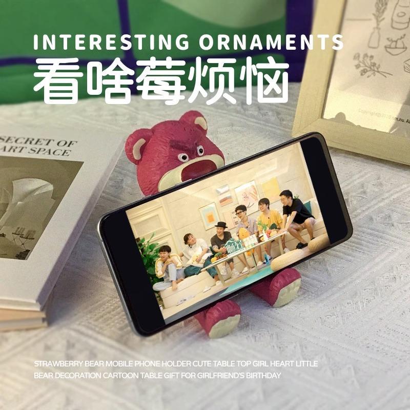 草莓小熊网红创意ins手机支架懒人支架桌面摆件多功能礼物便携女