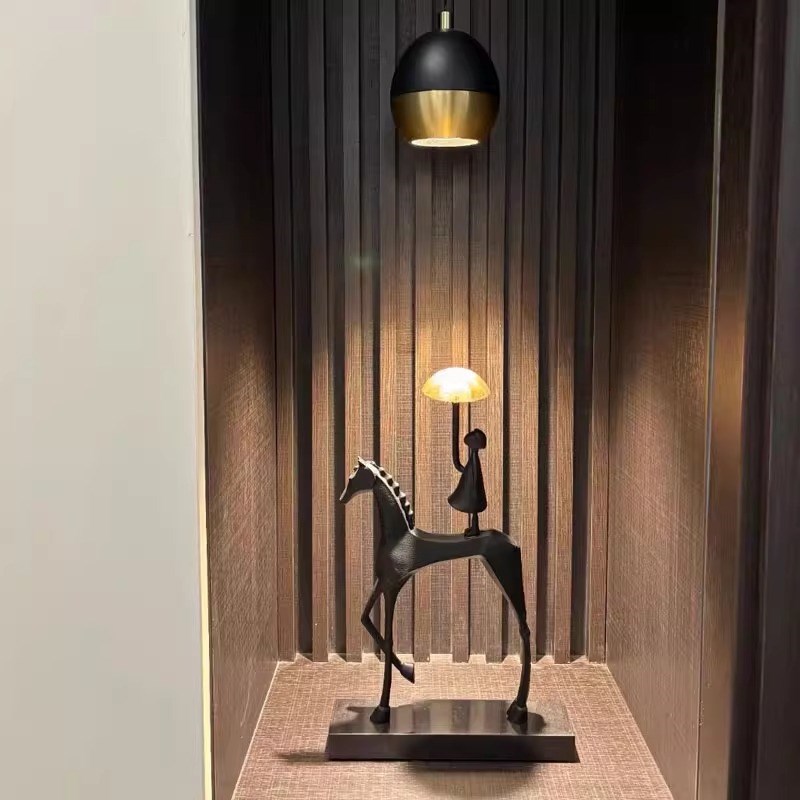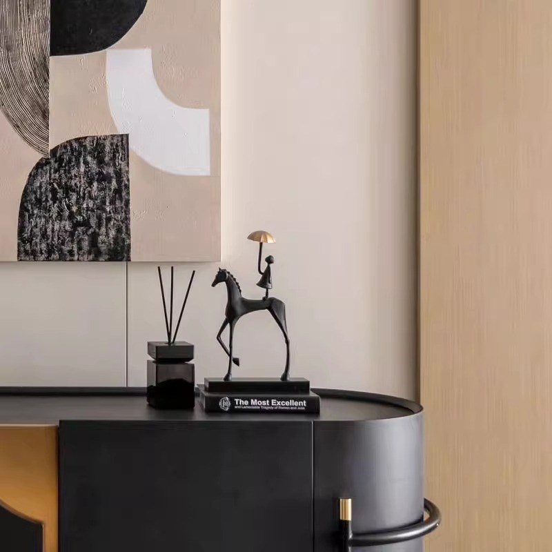高级感玄关客厅摆件轻奢s高档雕塑马酒柜电视柜办公室桌面软装
