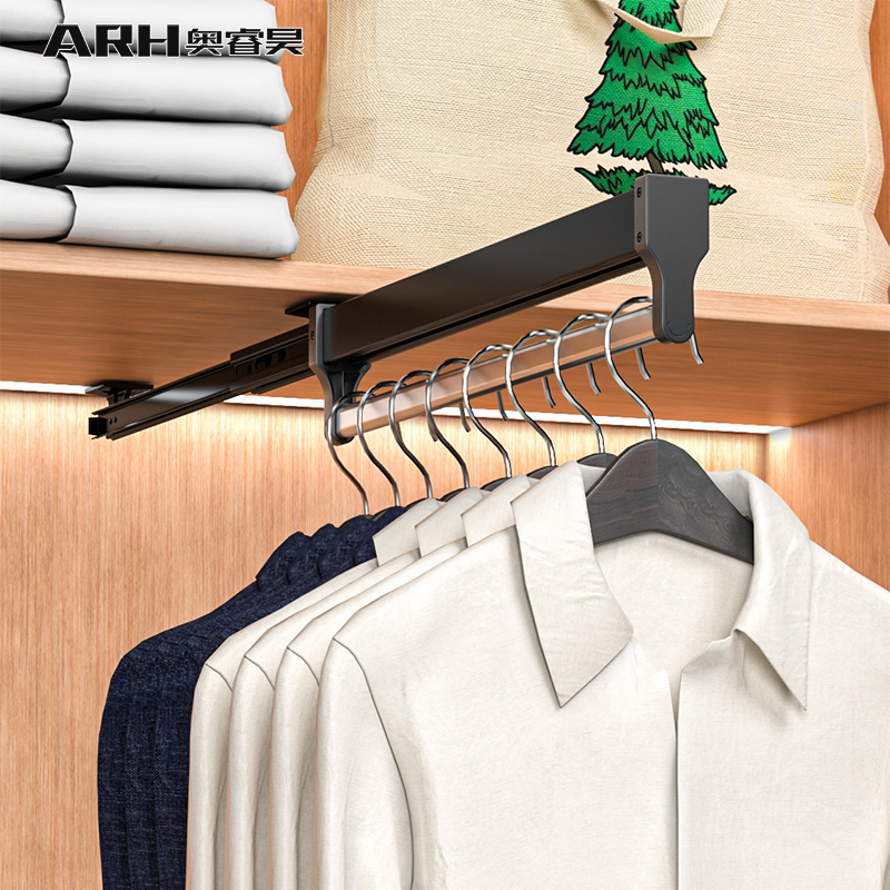 衣柜挂衣杆柜内浅衣橱顶装纵向竖向抽拉式伸缩衣架杆薄柜衣通