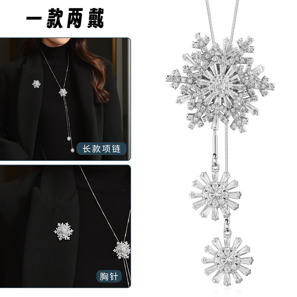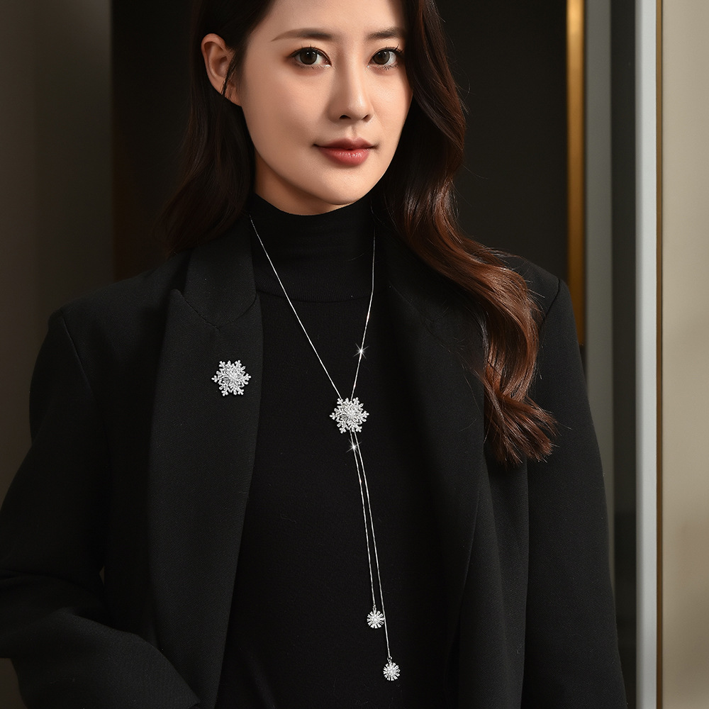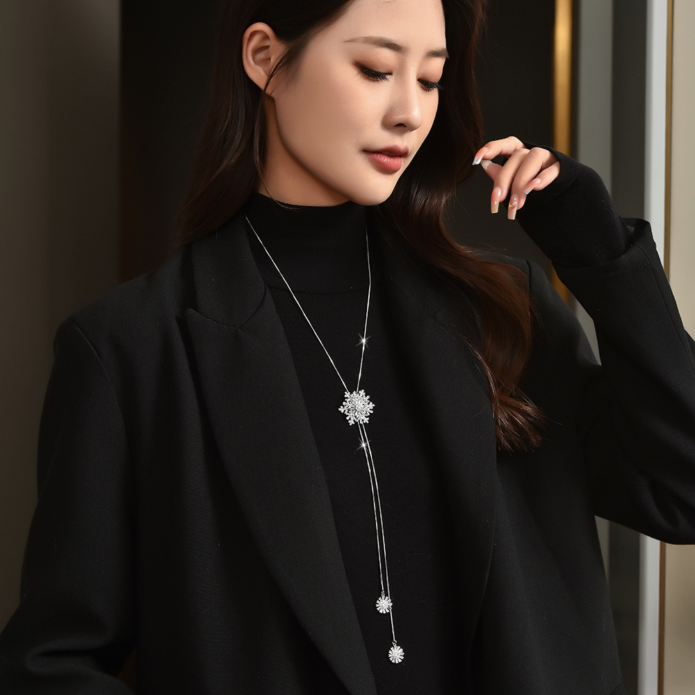 钻石之乡河南商丘人造钻石秋冬雪花毛衣链旋转流苏长款气质项链