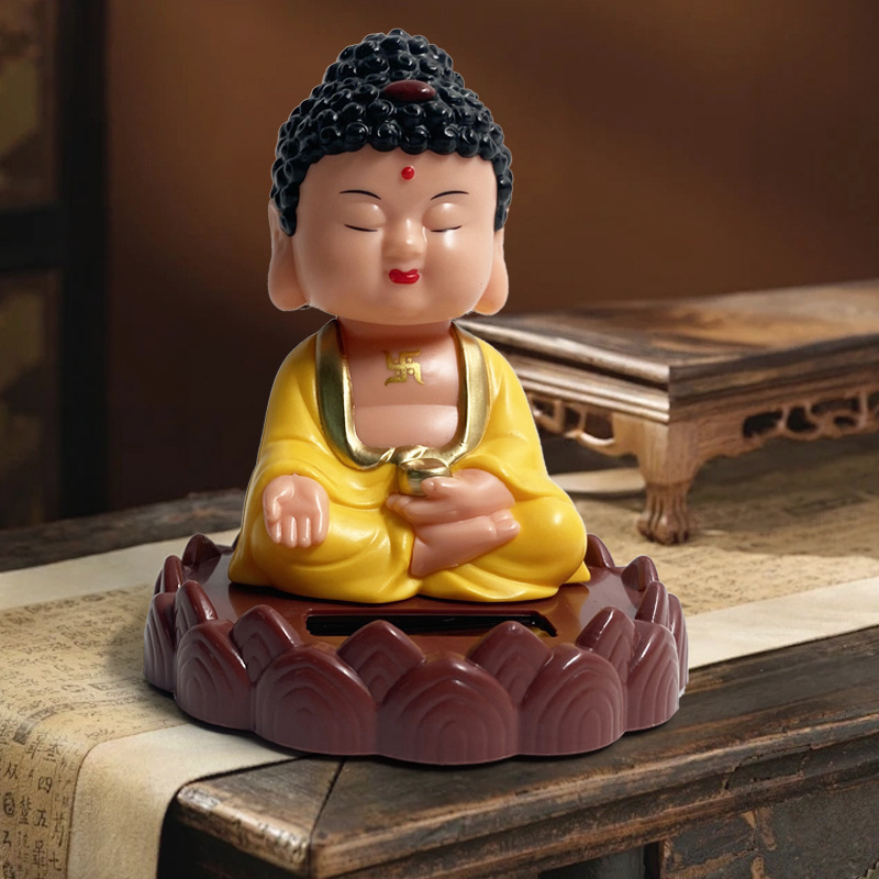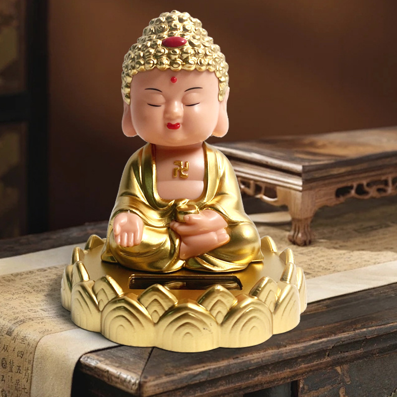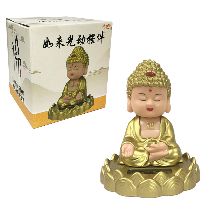 太阳能点头光圈如来摆件车内饰创意如来摆件车载装饰小公仔摇摆佛