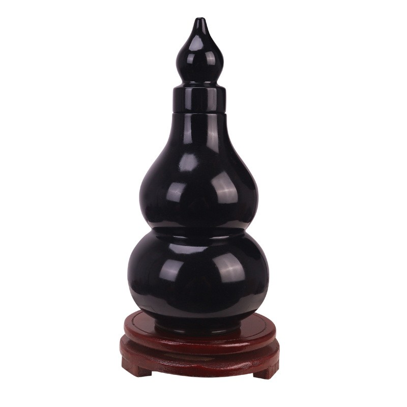 天然玉石开口空心黑曜石葫芦客厅家居饰品玉雕工艺品风水玉器摆件