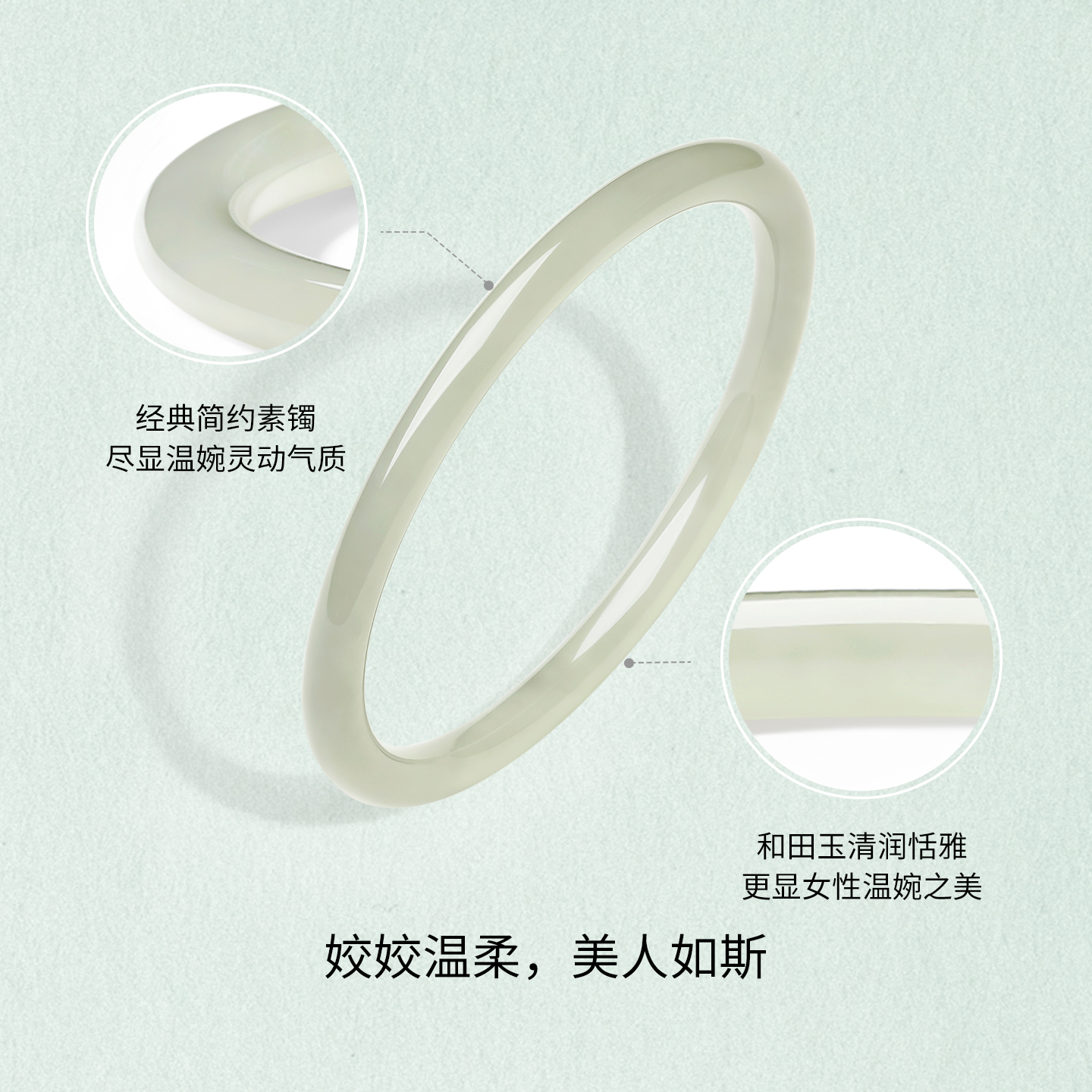 周六福和田玉手镯女显白青玉叮当镯手饰温婉美玉镯玉石节日礼物