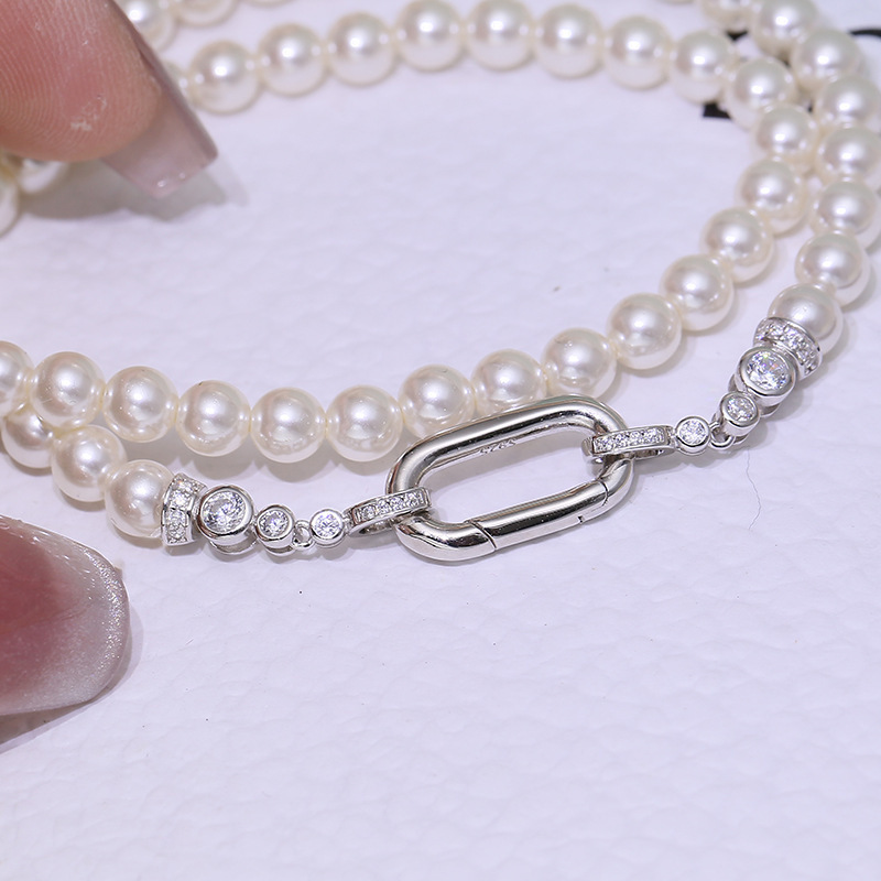 diy配件 S925纯银长款珍珠项链扣 手工串珠搭扣 手链毛衣链银扣女