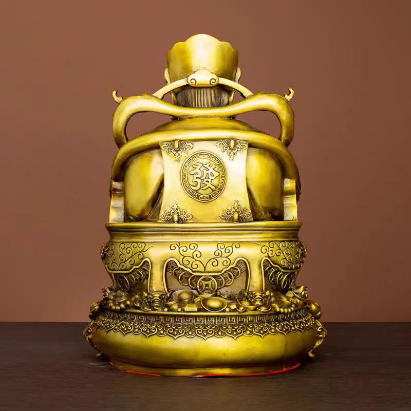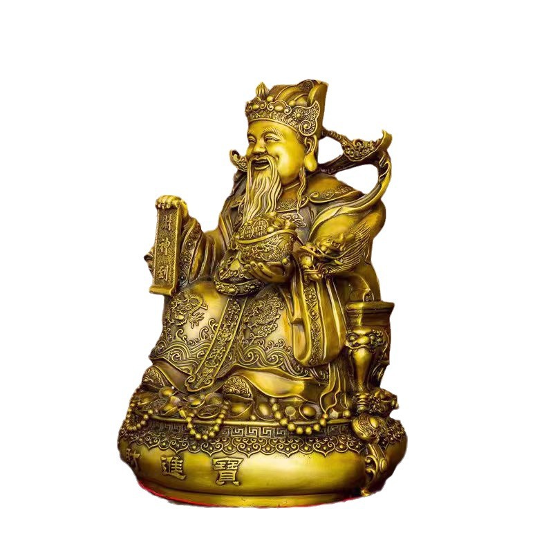铜财神爷摆件黄铜托元宝财神客厅公司开业大小号聚宝盆财神文财神