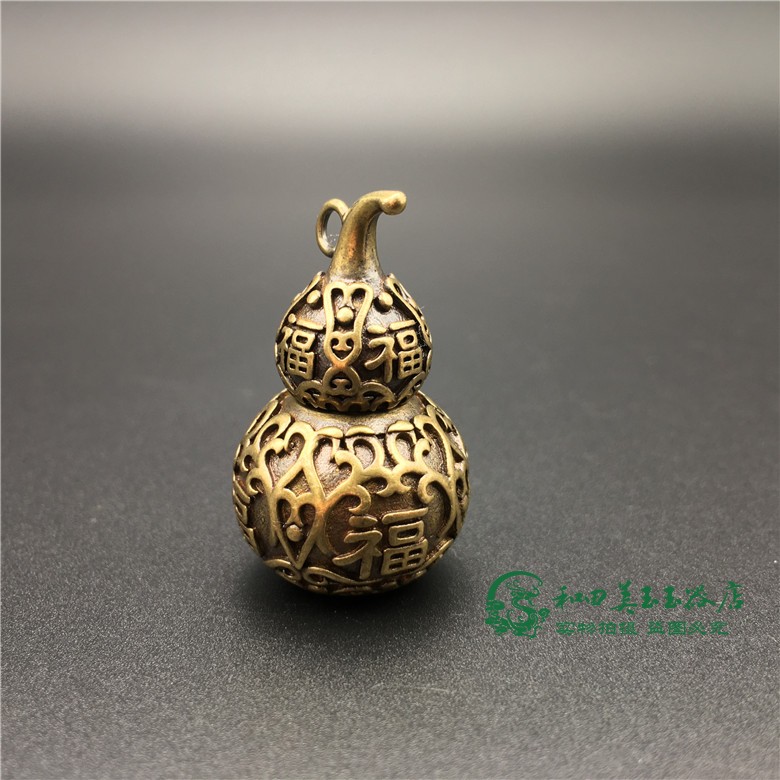 复古纯黄铜空心葫芦小挂件钥匙扣吊坠铜器福禄迷你仿古古玩杂