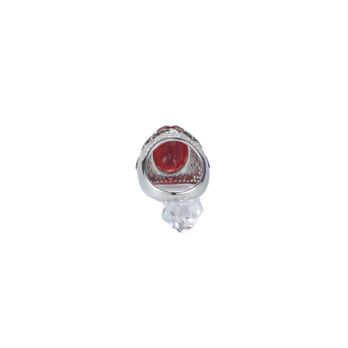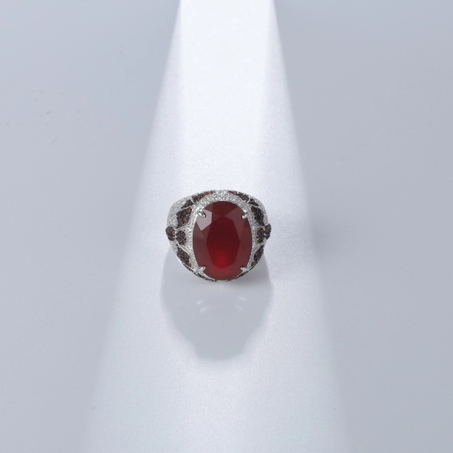 设计师款奢华红玛瑙戒指 小众设计感珠宝s925银镶嵌天安宝石戒指