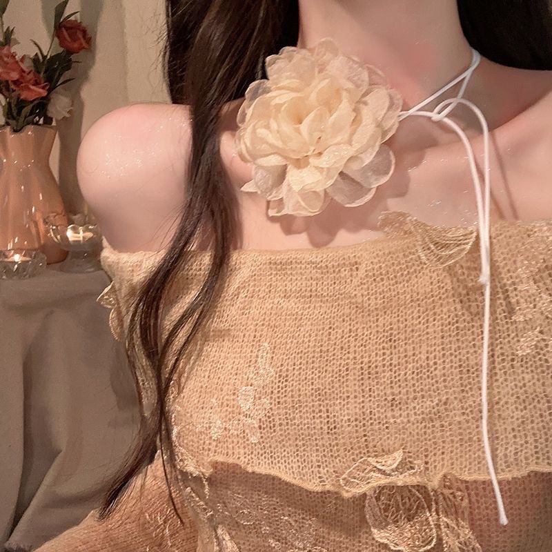 法式复古公主蕾丝大花朵颈链立体多层甜酷绑带山茶蝴蝶结锁骨链女