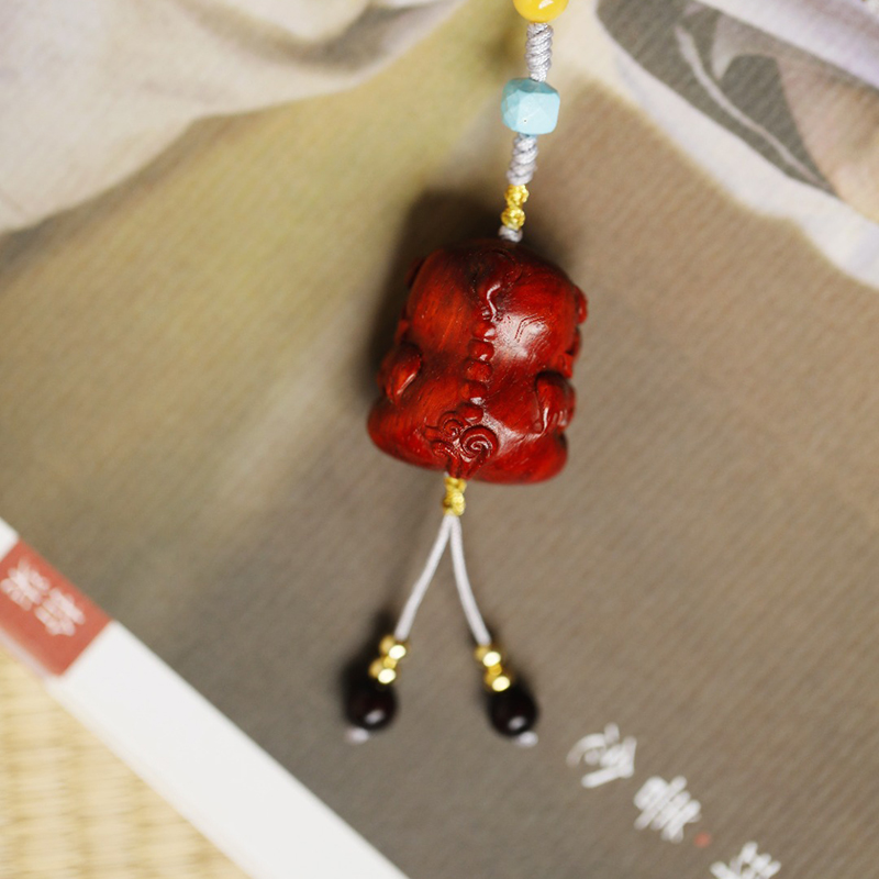 濮暹通宝貔貅招财木雕挂件汽车钥匙扣小挂饰男女生钥匙链手机吊坠