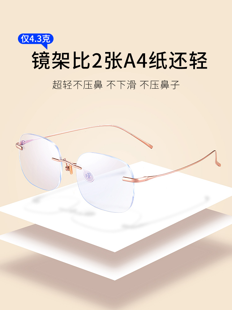 日本无框近视眼镜女可配度数纯钛超轻素颜大脸显瘦无边框眼睛镜框