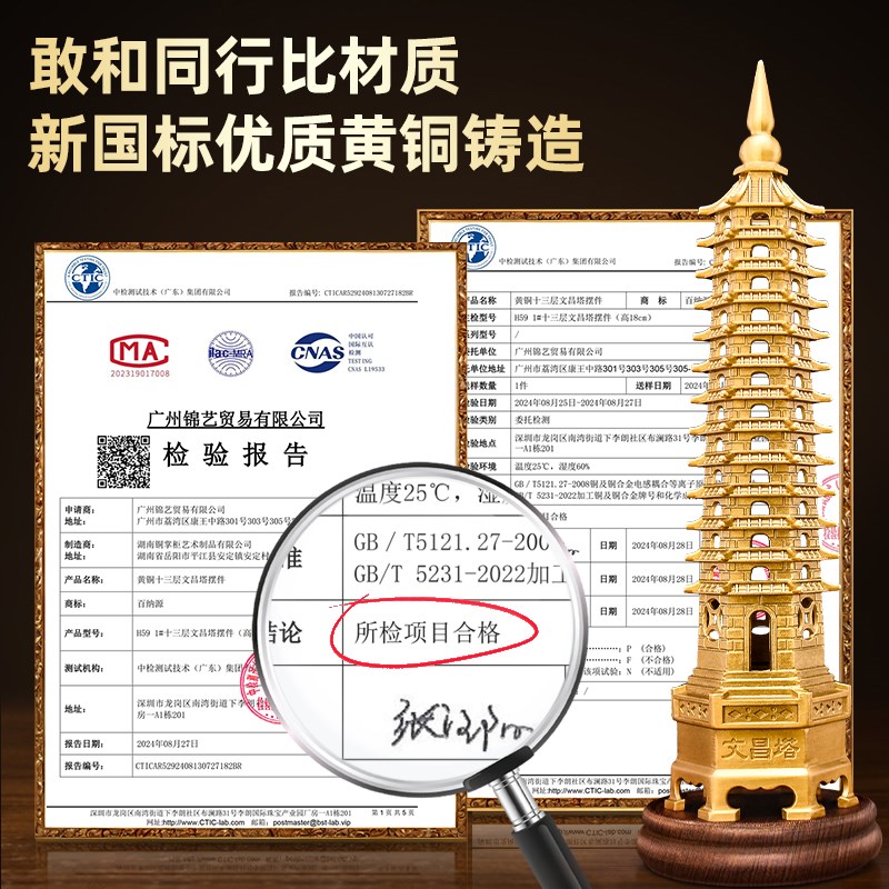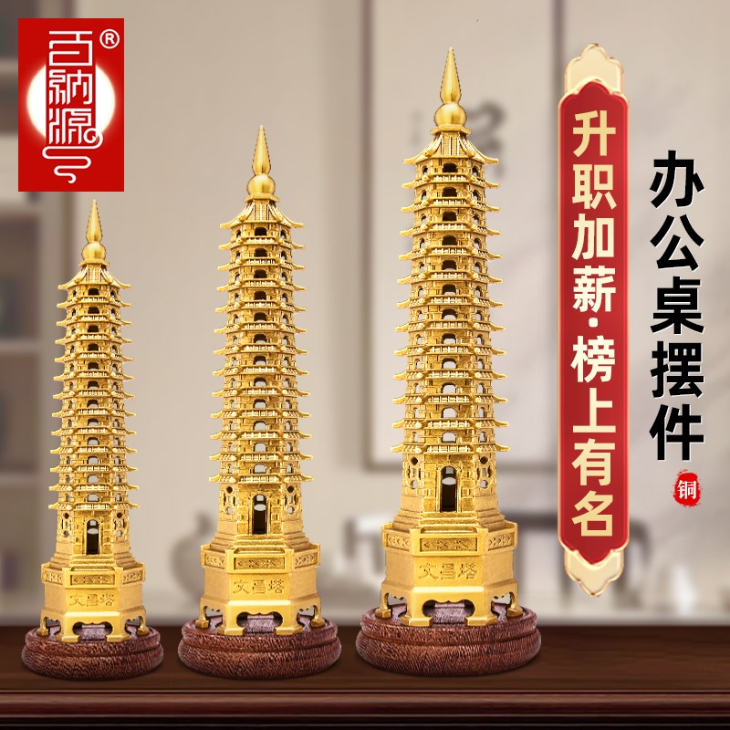 文昌塔摆件黄铜9层13层的九层十三层铜工艺品书房书桌办公室装饰