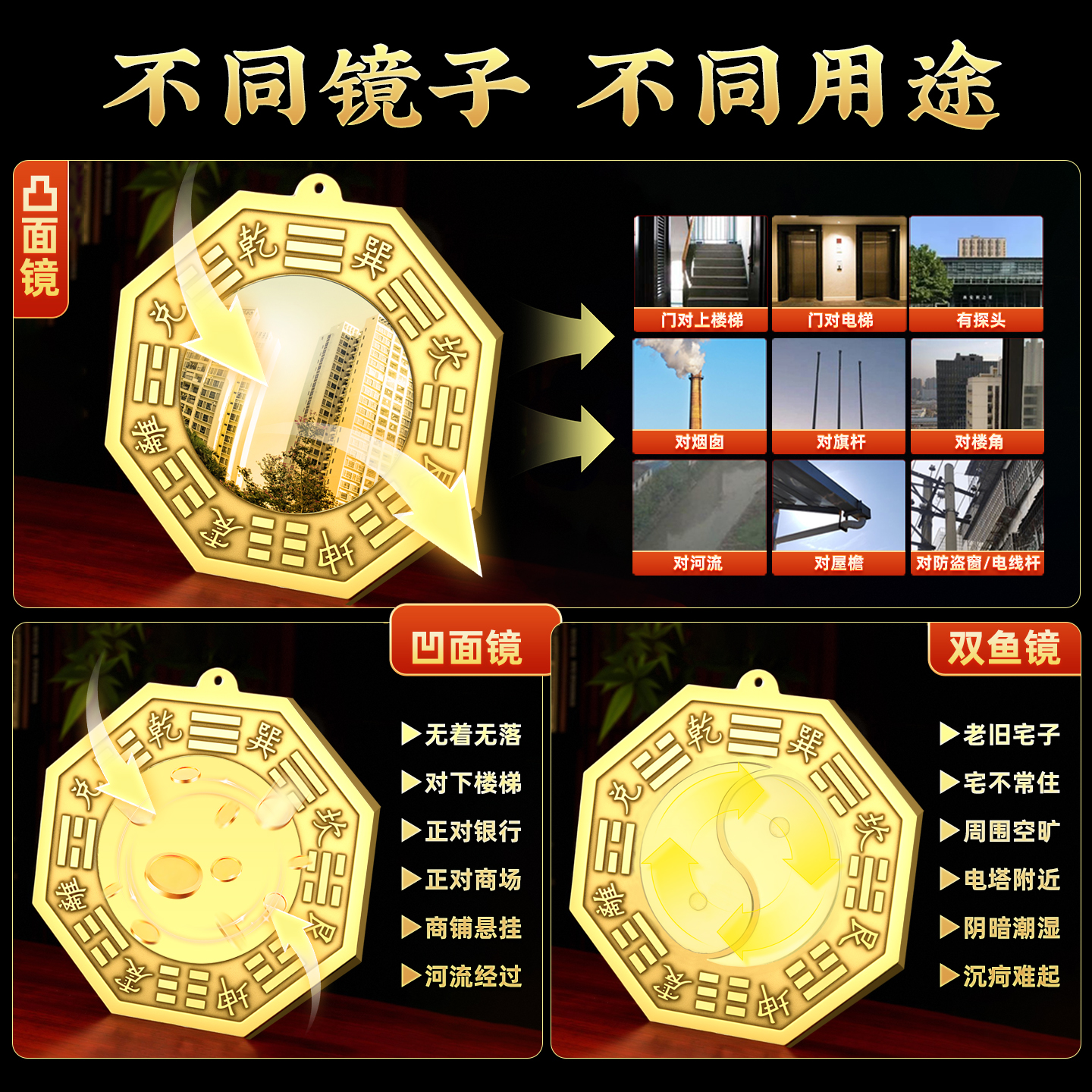 铜镜八卦镜怎么挂凸镜太极凹镜九宫家用门口大门对门对窗凸面镜子