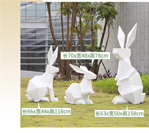 大型玻璃钢几何兔子雕塑动物灯笼兔摆件公园草坪商场售楼部装饰品