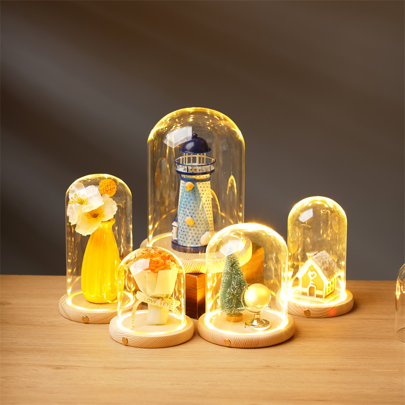 干花永生花乐高玻璃罩diy手作手办摆件新款触摸开关防尘玻璃罩