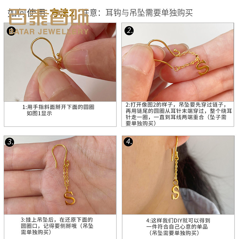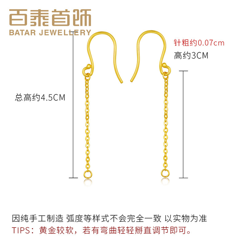 百泰黄金光面耳钩足金999弯钩耳钉DIY配饰O字链半成品5G耳坠配件