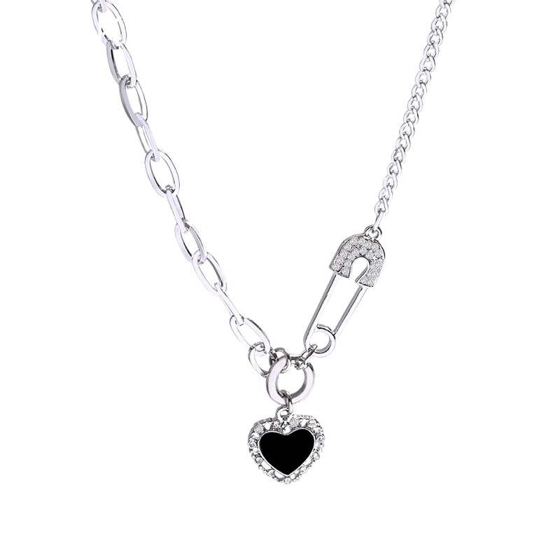 钛钢别针黑色爱心项链女夏轻奢小众设计感高级锁骨链2022年新款潮